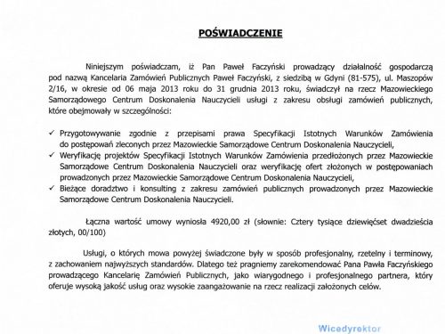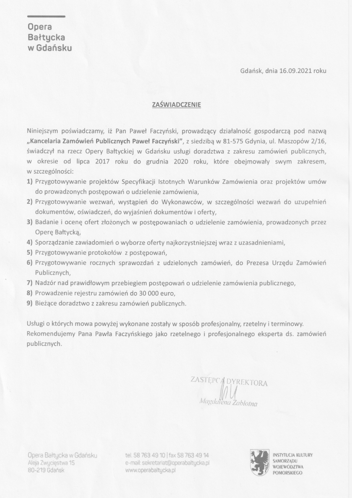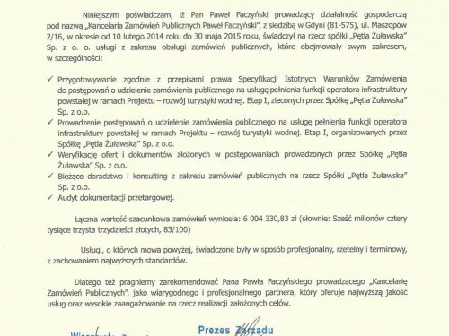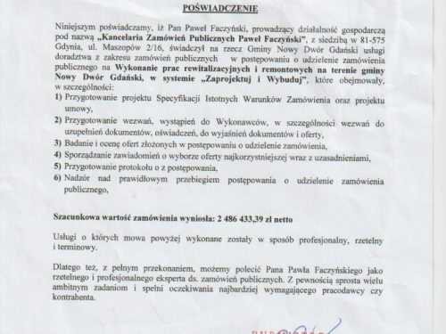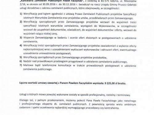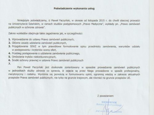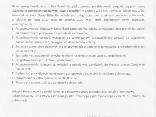Z moja kancelarią współpracują głównie firmy prywatne i jednostki samorządu terytorialnego z Trójmiasta i okolic, choć nie tylko. W ich imieniu przeprowadzałem setki postępowań przetargowych i weryfikacji konkurencyjnych ofert złożonych w postępowaniach przetargowych.