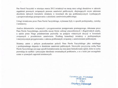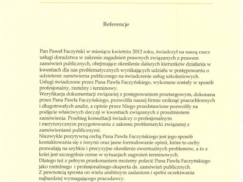 Powyższe słowa potwierdzają otrzymane od klientów referencje: